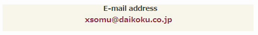 Please contact the following E-mail address if you have any questions regarding products and services or other matters.