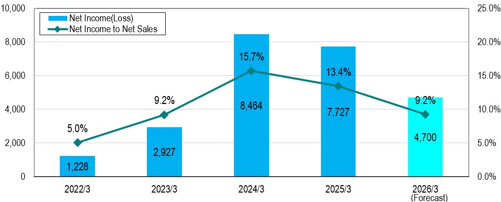 Financial Highlights (Million Yen) Net Sales Operating Income / Operating Income to Net Sales Ordinary Income / Ordinary Income to Net Sales Net Income(Loss) / Net Income to Net Sales