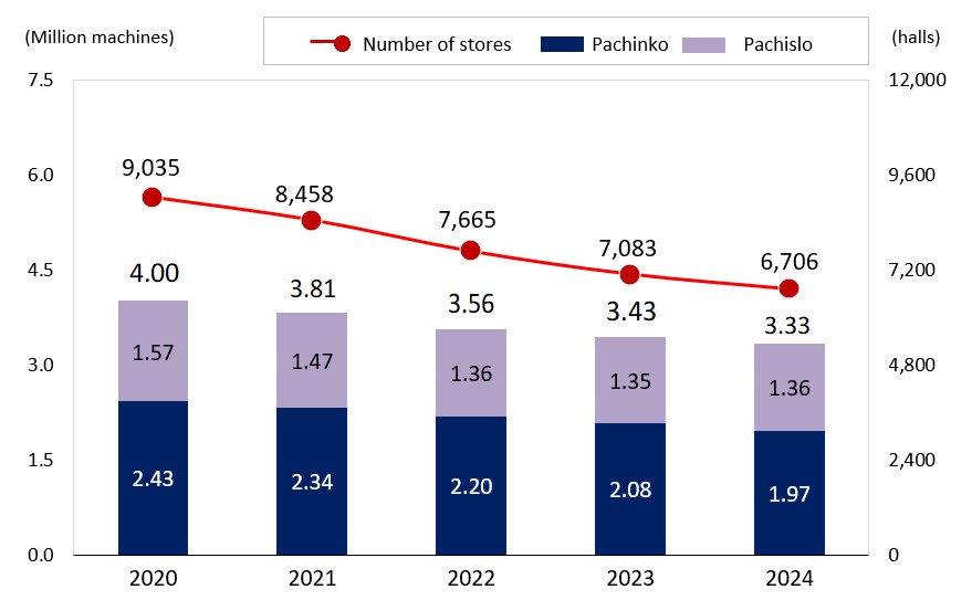 Trends in the Numbers of Pachinko Halls and Installed Pachinko and Pachislot Game Machines