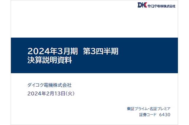 「2024年3月期第3四半期 決算説明資料」掲載のお知らせ