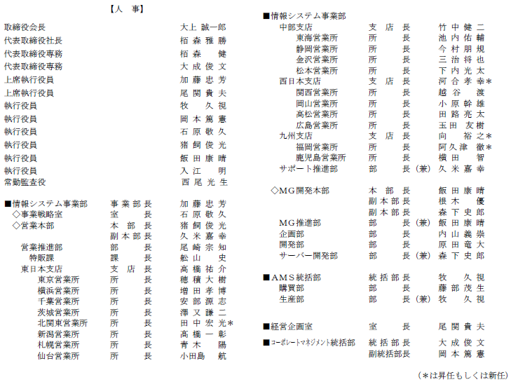 2026年4月 人事異動に関するお知らせ 当社におきましては、新年度(2026年度)がスタートする4月1日付で人事異動を行います。 つきましては、各部門の責任者をお知らせいたします。 2026年4月1日付 人事異動